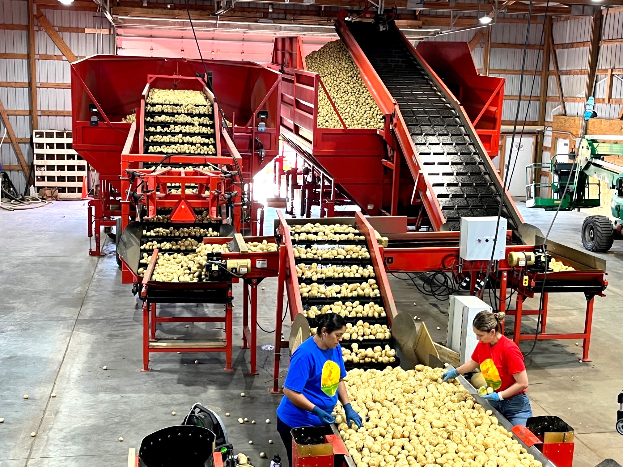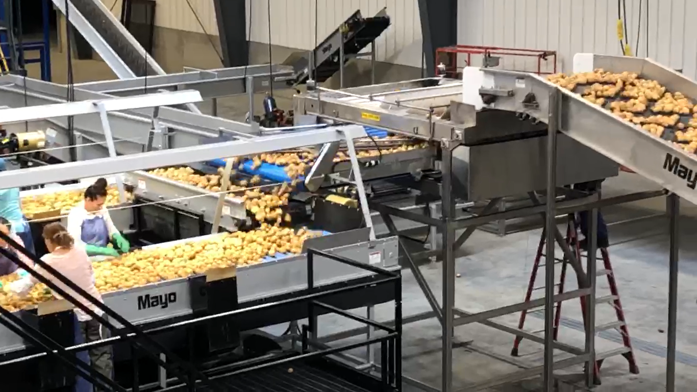 Mayo designs and builds the equipment lines for cleaning and shipping potatoes for chipping. With a well designed layout, incorporating evenflows, washers, felt dryers, grading all is done at a high volume and with gentle handling.