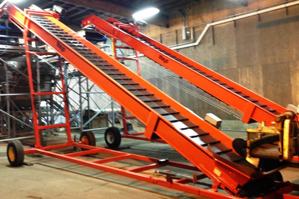 Mayo Elevating Conveyors are designed for each application to reduce roll back and bruise. They are built in a variety of configurations including portable or stationary, cleated belt or chain and the correct cleat pattern.