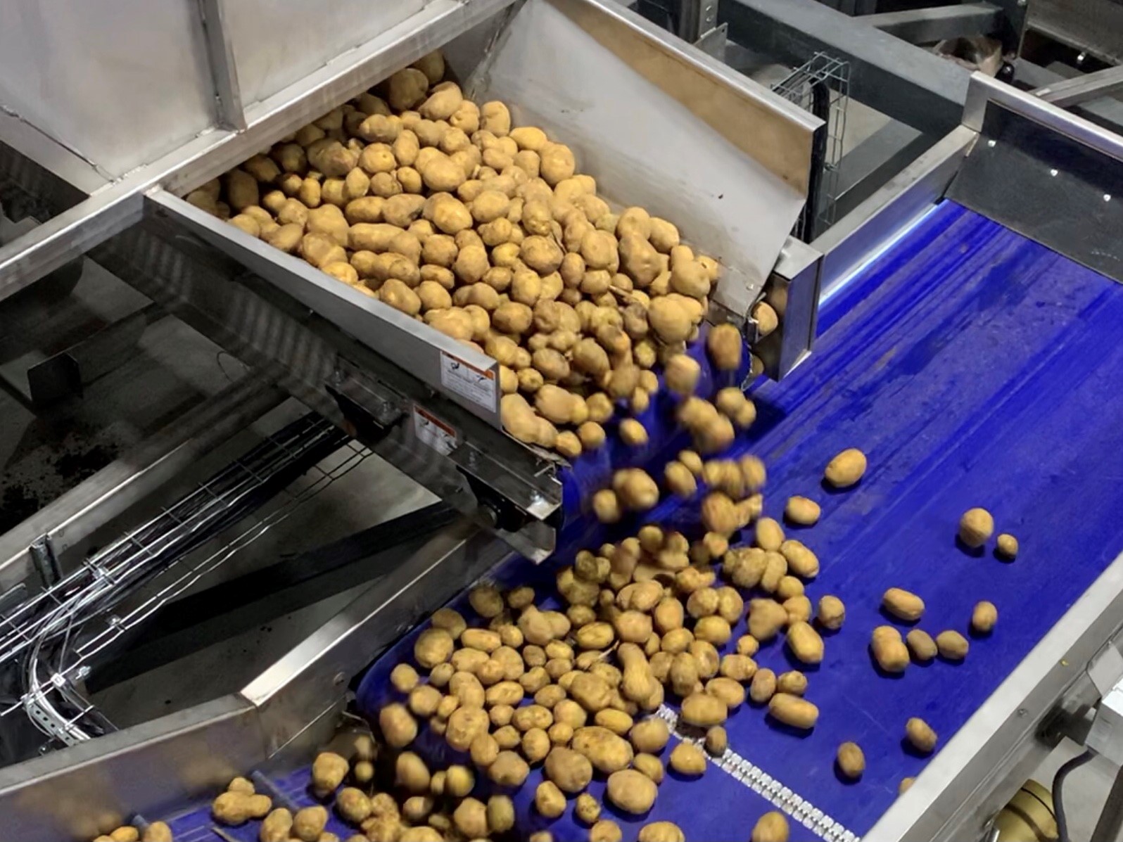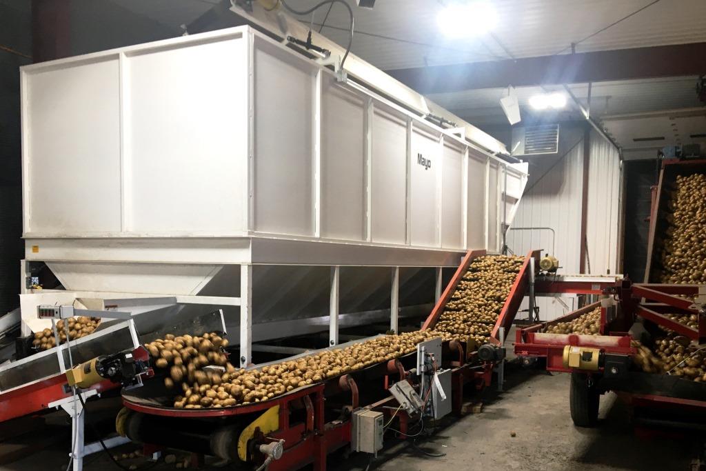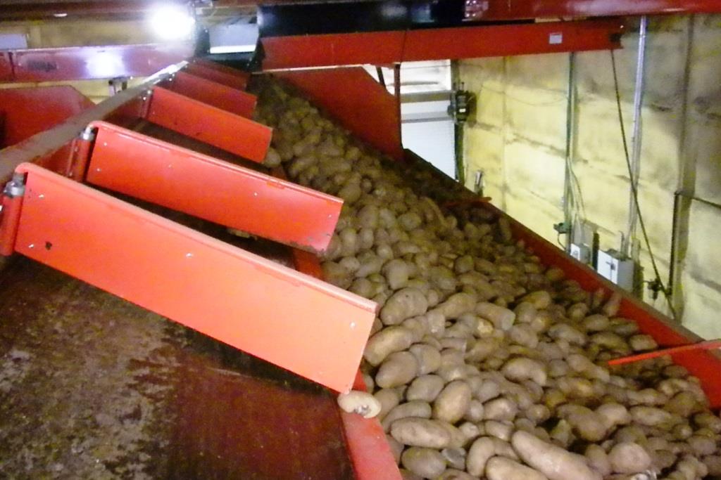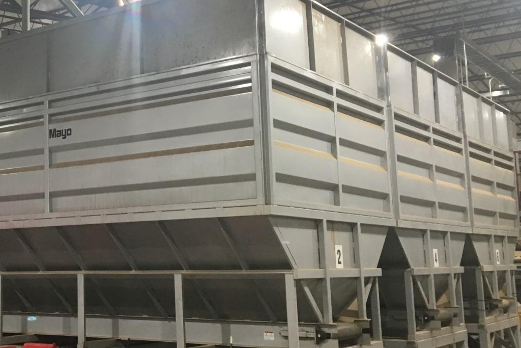 The Mayo Metering Bins feature a tilt feed conveyor and let down ladder for gentle crop receiving and distribution through the bin. The discharge belt has variable speed control. Capacities up to 1,000 cwt.