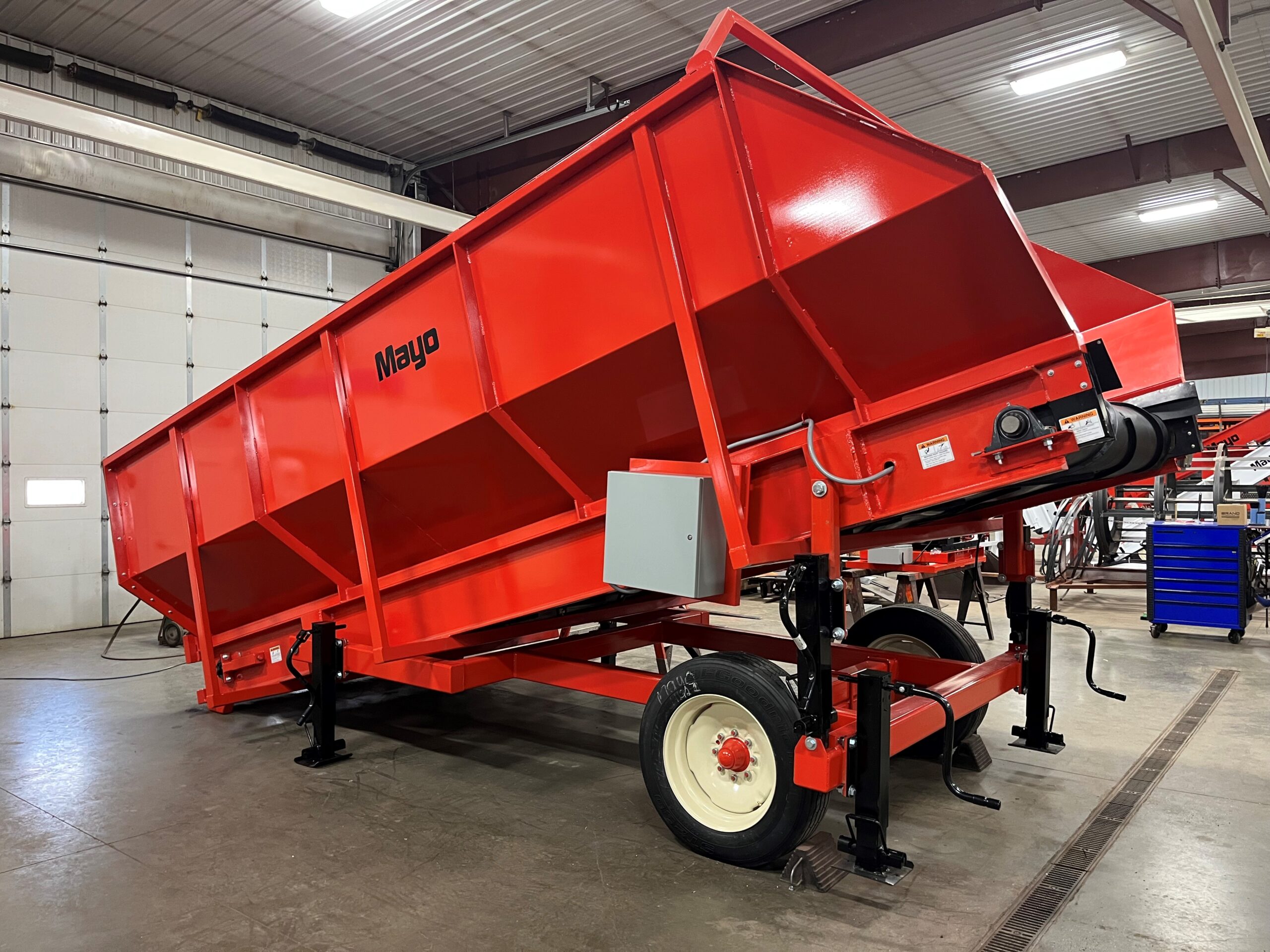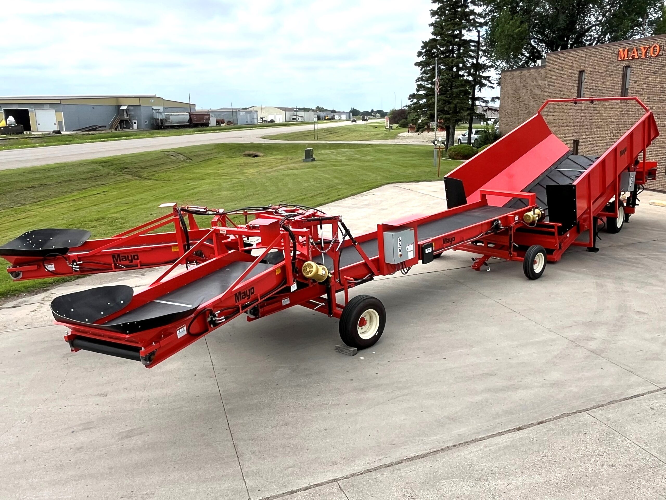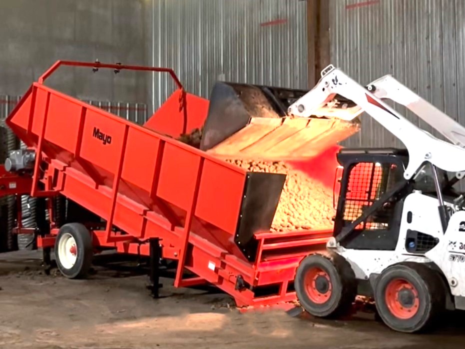 Mayo Receiving Hoppers are ideal for gentle receiving and discharging going into storage, transloading and shipping. They are auto speed controlled & come in several sizes. With a matching Stinger Conveyor, they are excellent as Metering Hoppers for holding several hundred bags with an even flow feeding eliminators and sorting equipment.