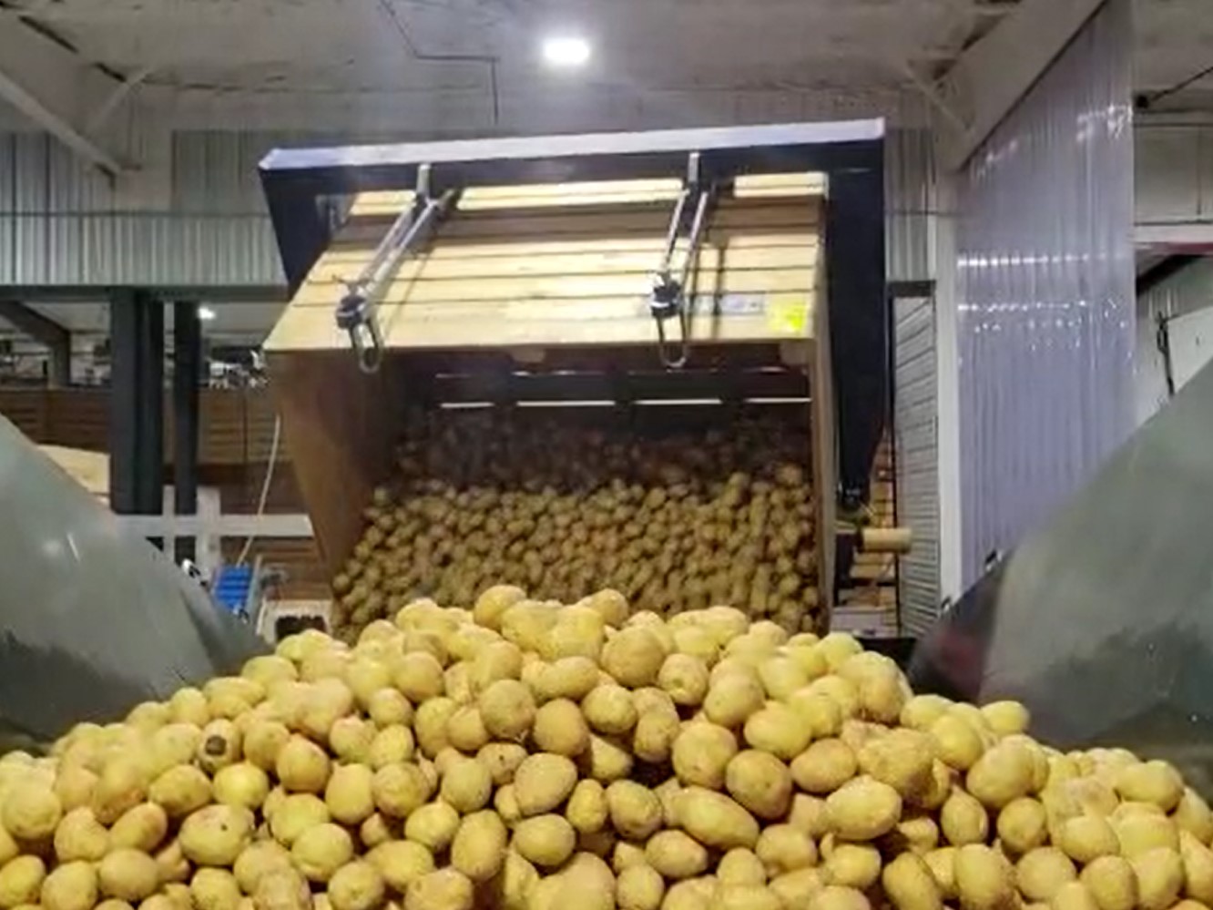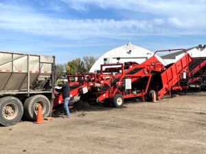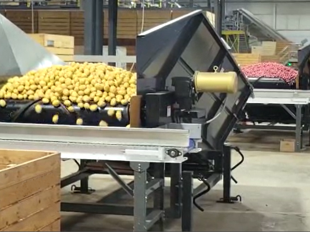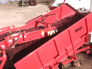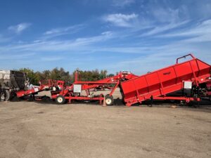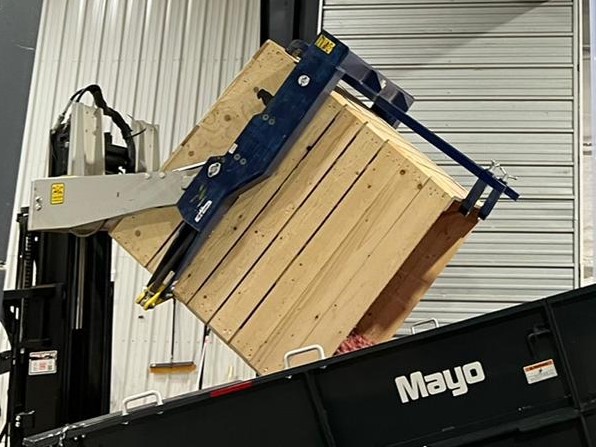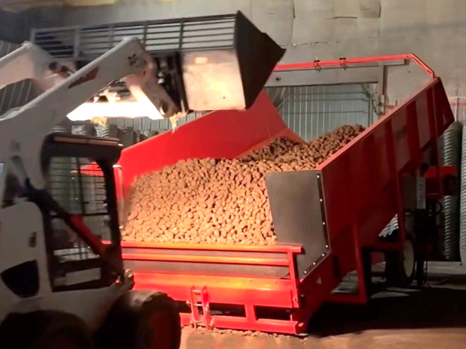 Mayo Receiving Hoppers are ideal for gentle receiving and discharging going into storage, transloading and shipping. They are auto speed controlled & come in several sizes. With a matching Stinger Conveyor, they are excellent as Metering Hoppers for holding several hundred bags with an even flow feeding eliminators and sorting equipment.