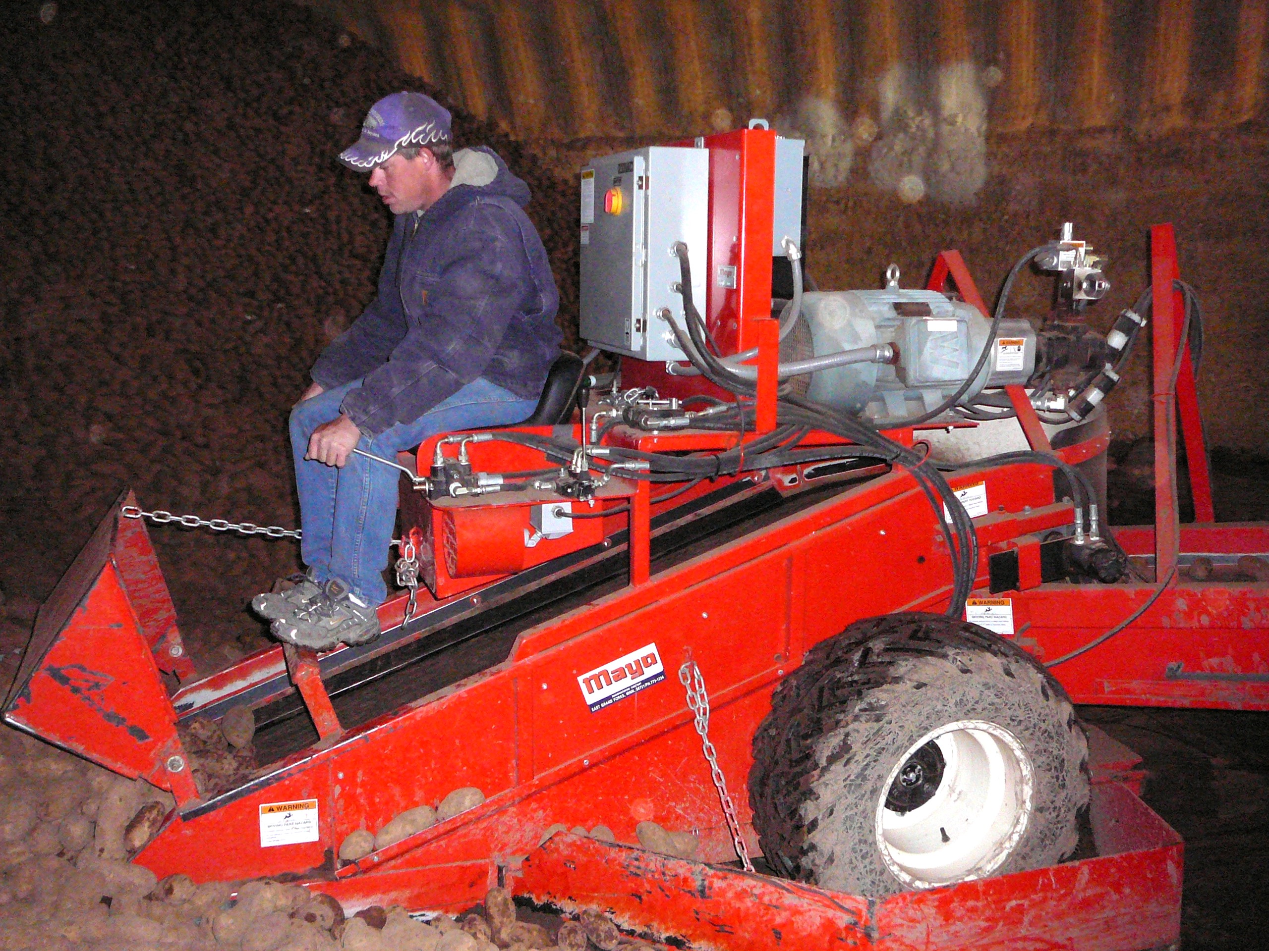 The Mayo Scooper Hog utilizes the most advanced hydraulic system and controls for power and flexibility when taking potatoes out of storage. From the planetary wheel drive, variable speed belts and operator comfort, this machine is the leader in performance. Comes in two and four wheel models.